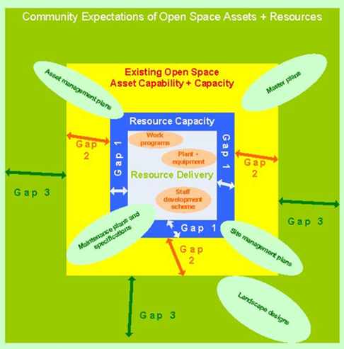 This is the gap where Council policies, plans and strategies are critical. They influence decisions to allocate resources, which then determine the capability and capacity of the open spaces to meet community needs and expectations. Working on this gap then flows across into Gap 2 and the operating and capital resources made available for open spaces. At last, the Advisory Group had a clear understanding of what they wanted to do.